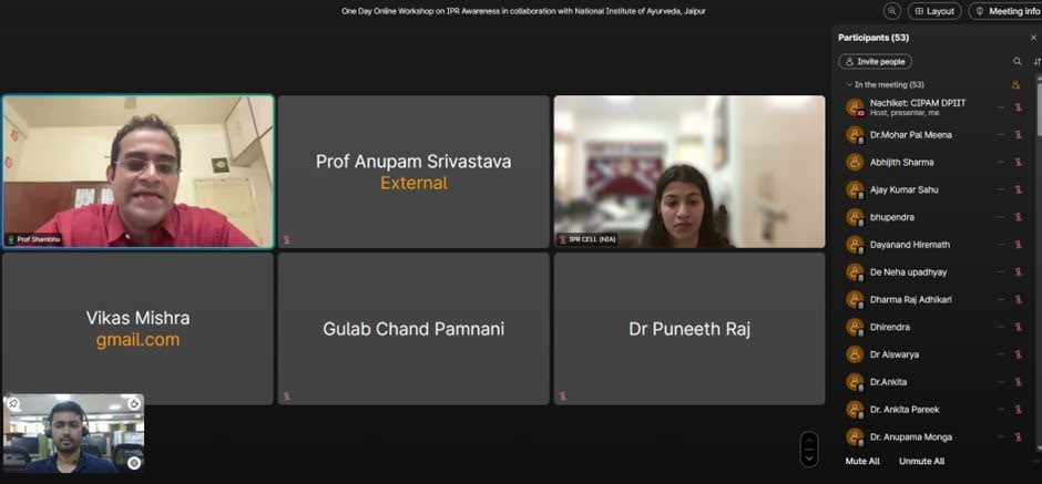 IP awareness program for Ayurveda students at the National Institute of Ayurveda (Online)  on 20 September 2025.
